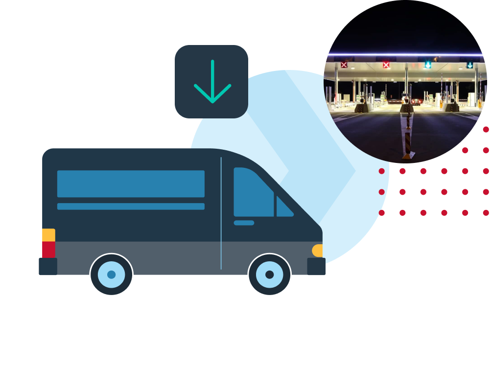 Verwalten Sie mühelos Mautzahlungen und grenzüberschreitende Fahrten in ganz Europa. Nahtloser Zugang zu Mautstraßen und konsolidierte Abrechnung – alles aus einer einzigen, zuverlässigen Quelle. Ganz gleich, ob Sie die täglichen Routen navigieren oder die Langstreckenlogistik optimieren, diese Lösungen helfen Ihnen, den Überblick zu behalten, die Verwaltungskosten zu senken und Ihre Flotte reibungslos über die europäischen Grenzen zu bringen.